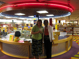 Author Jean Alicia Elster autographing Who's Jim Hines? at book release party at As The Page Turns Bookstore, Northville, Michigan.